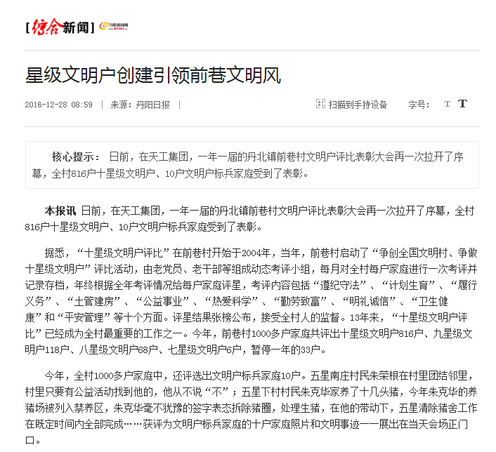 星级文明户创建引领前巷文明风