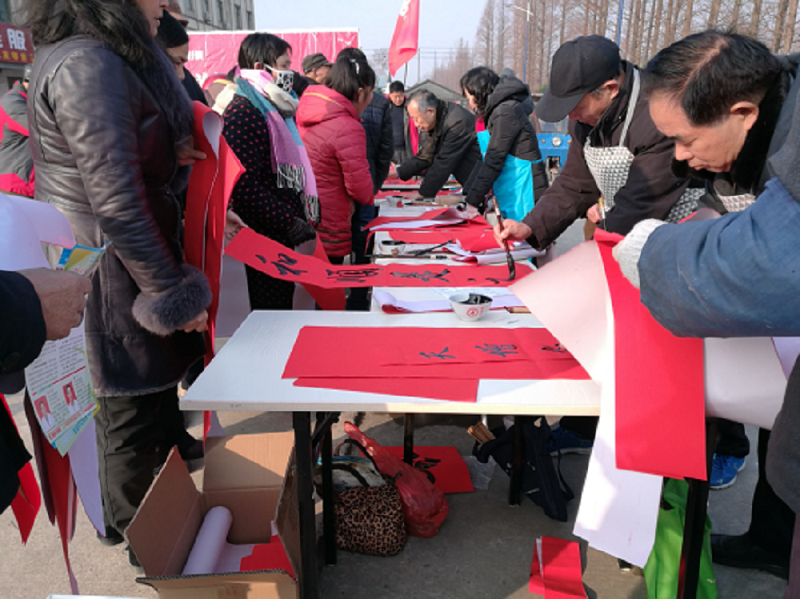 活动现场一派喜庆祥和,闻讯而来的群众把志愿者围得水泄不通,由文化志愿者组成的义诊、理发、戏曲、书画、咨询五个服务分团,为乡亲们带来了精彩的戏曲文艺演出,提供了农业科技、政策法规、生活生产等宣教咨询,开展了义诊、理发、春联题写等活动,深受老百姓欢迎。