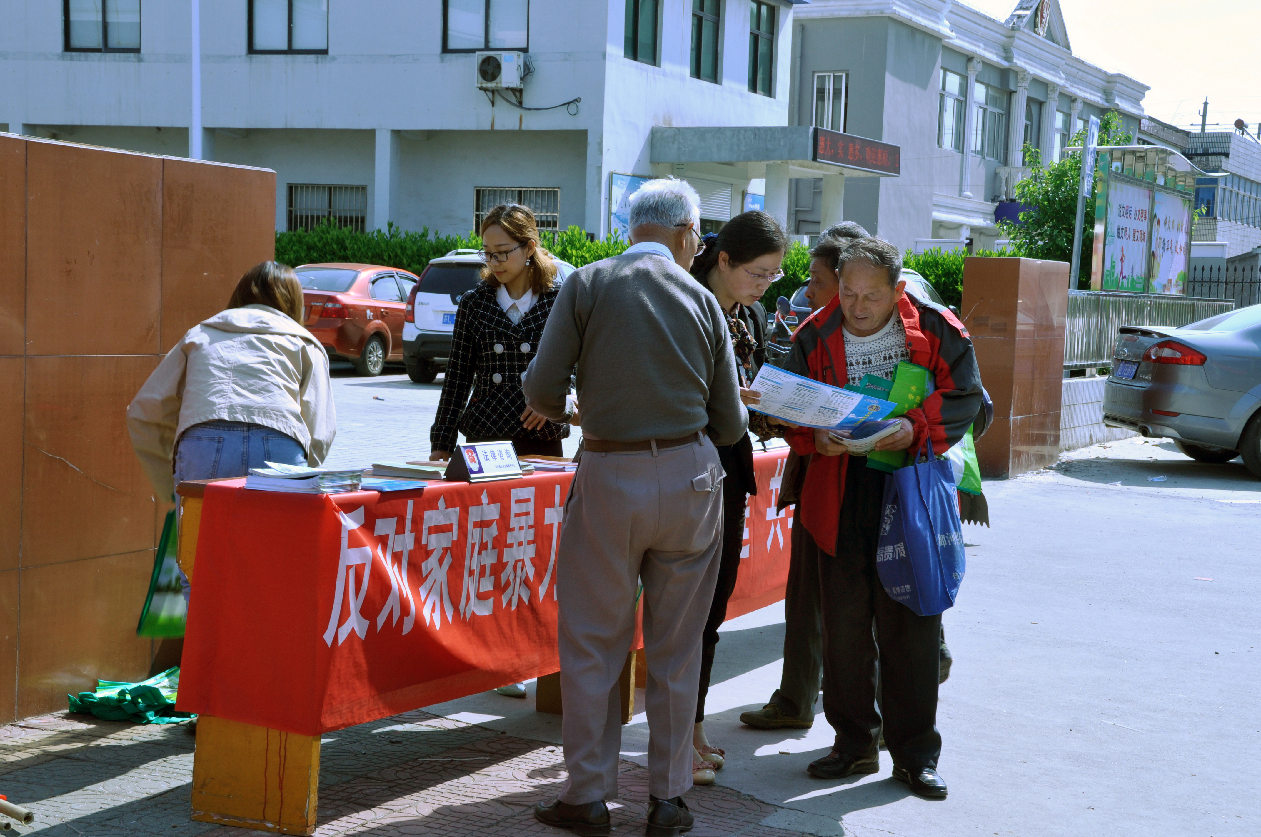 在活动中通过悬挂宣传标语、发放宣传资料、设置咨询台等方式,帮助群众树立法治观念,增强维护劳动者合法权益、反家庭暴力等法律意识,提高依法维护自身权益的能力,懂得如何用法律来维护自己的合法权益。