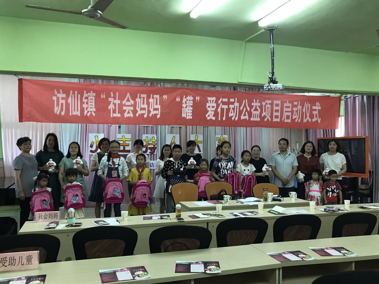 启动仪式上,由镇妇联招募的十位“社会妈妈”和来自幼儿园、小学的十位贫困儿童进行了爱心书包和爱心储蓄罐的交换,并进行了现场结对,受助儿童在“社会妈妈”的捐赠证书上签上了本人的信息。仪式最后,分管妇女儿童工作的领导作了重要讲话,希望有越来越多的个人和团体加入到“社会妈妈”的群体中来,让孩子们感到“心有人爱,身有人护,难有人帮”,让每一个贫困儿童都能感受到来自社会的关爱。