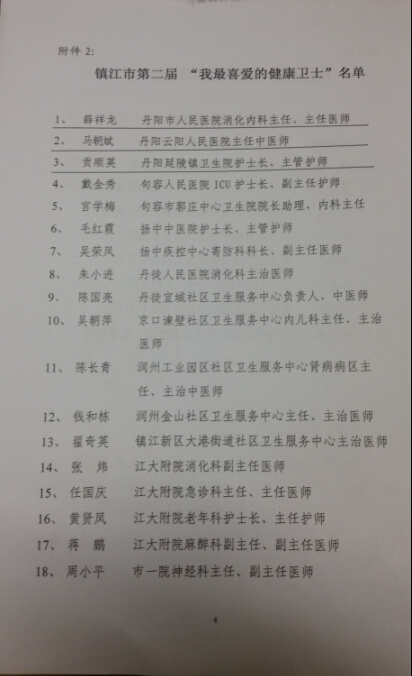 卫生局 关于表彰第二届镇江市“我最喜爱的健康卫士”“十大医德标兵”的决定