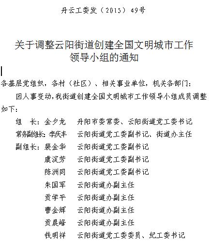关于调整云阳街道创建全国文明城市工作领导小组的通知