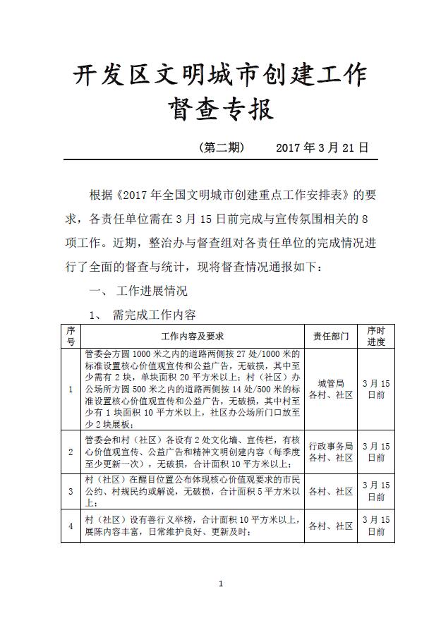 开发区文明城市创建工作督查专报—2017年3月27日