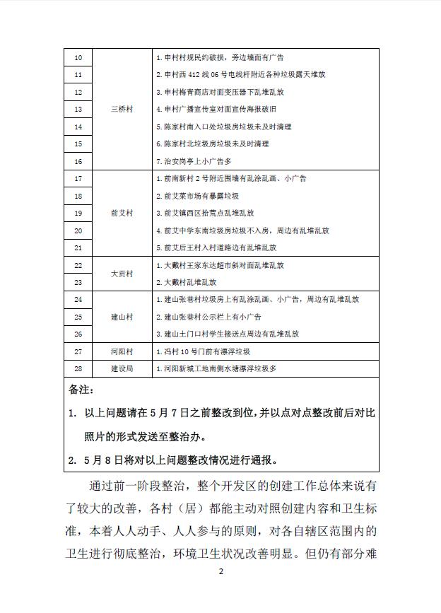 开发区文明城市创建工作督查专报—2017年5月9日
