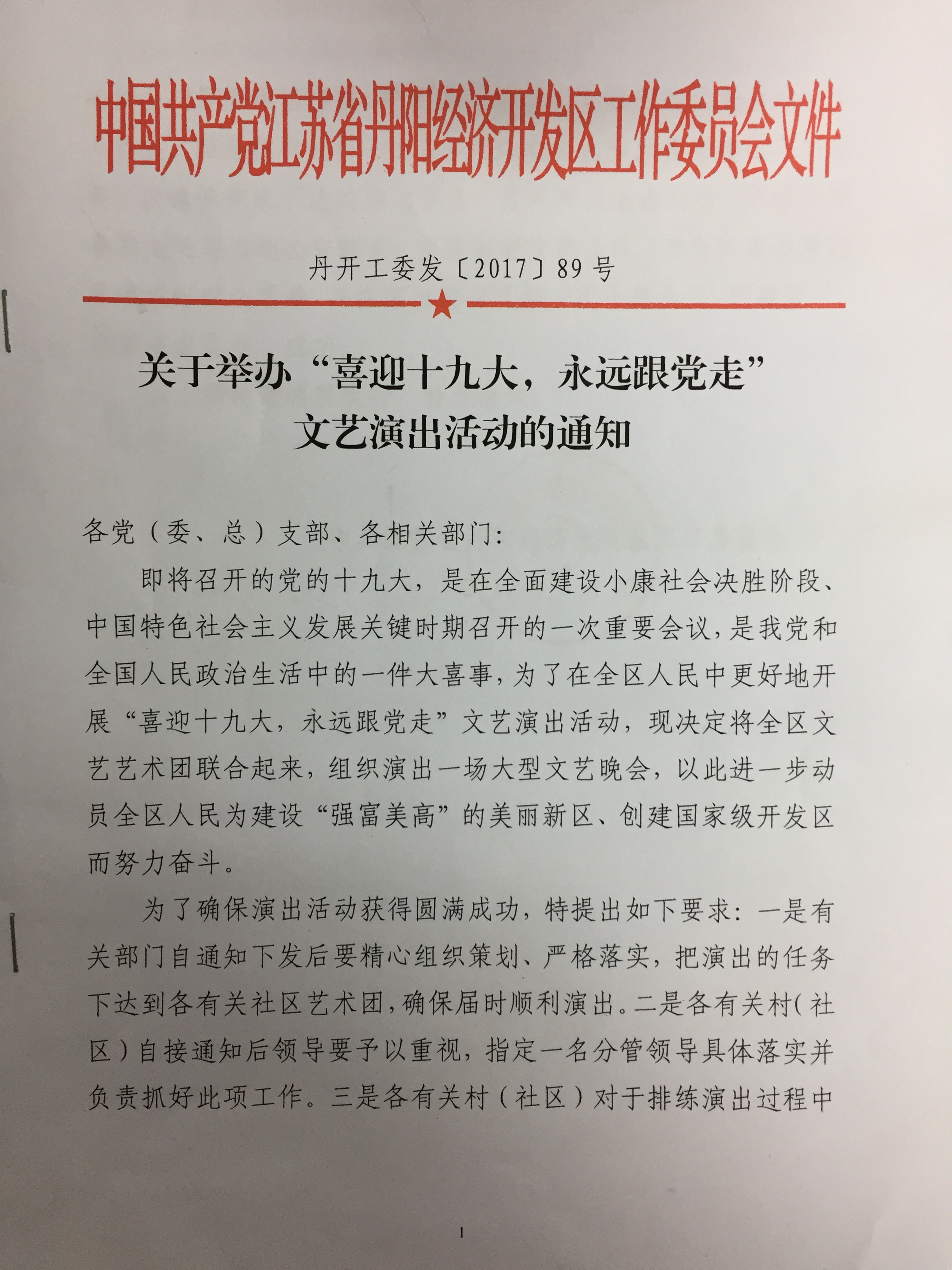 开发区举办“喜迎十九大”文艺演出