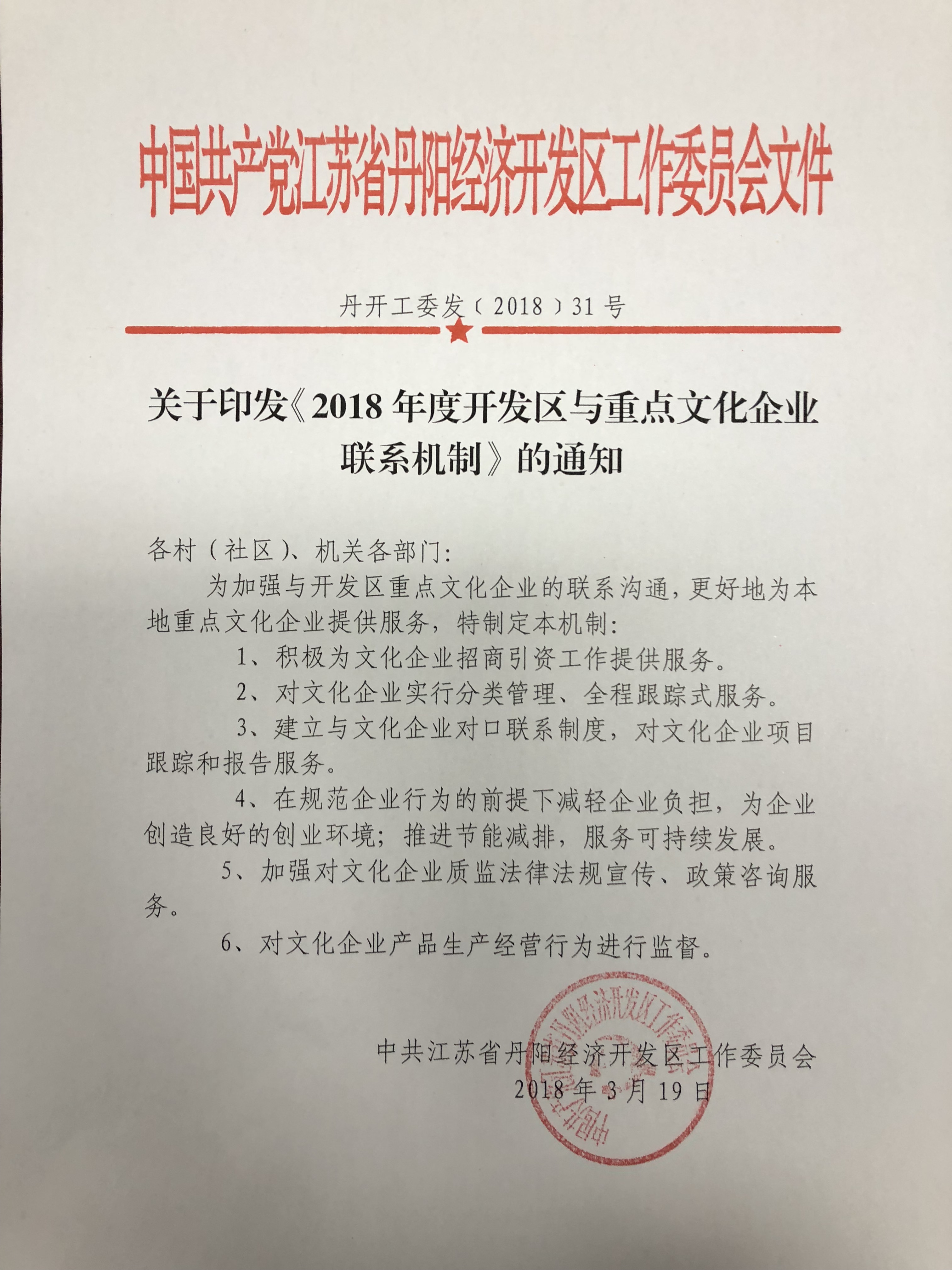 关于印发《2018年度开发区与重点文化企业 联系机制》的通知
