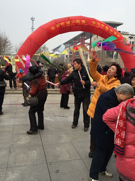 街道文体中心还联合市民广场社区、凤凰新村社区和老年书画协会在人民广场联合举办了“传承灯谜云阳情,共筑共圆中国梦”猜字谜送春联活动,为市民送去了新年的祝福。