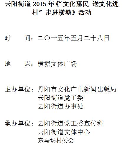云阳街道紧紧围绕现代公共文化服务示范区建设,推动城乡一体化建设,5月28日,在东马场村的文化广场举办了文化惠民送文化进村系列活动。当天下午2点,举办了“非遗展示”、“欣欣向荣新云阳摄影图片展”、“云阳特色灯谜会猜”活动。