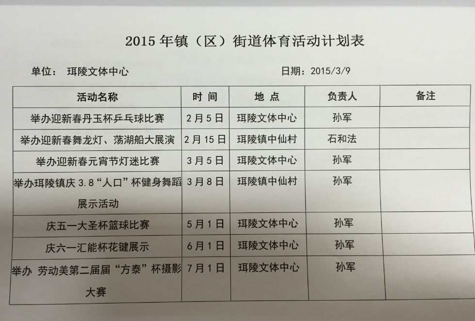 2015年珥陵镇文体活动计划表
