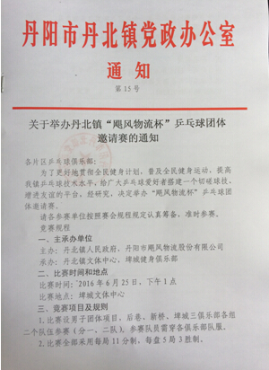 关于举办丹北镇“飓风物流杯”乒乓球团体邀请赛的通知