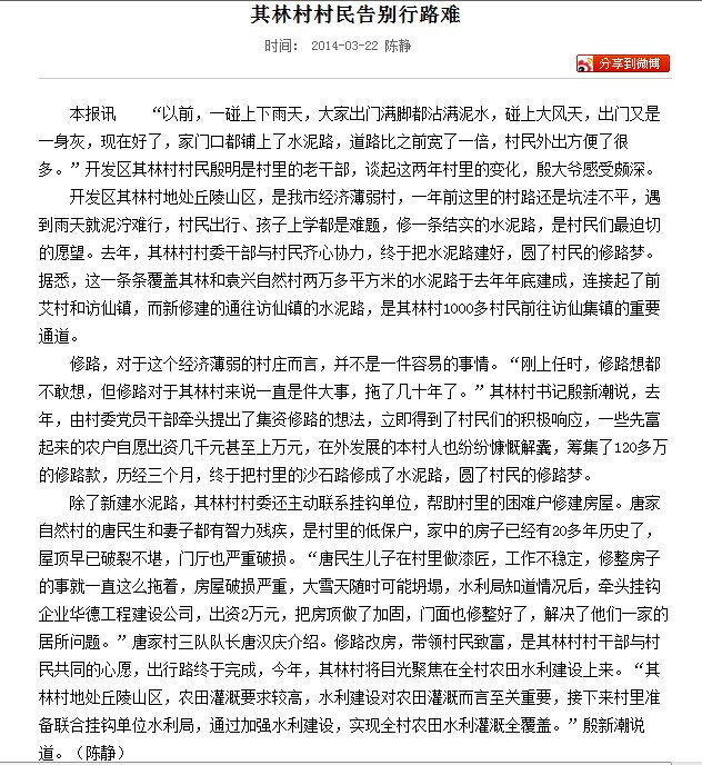 信息:其林村村民告别行路难