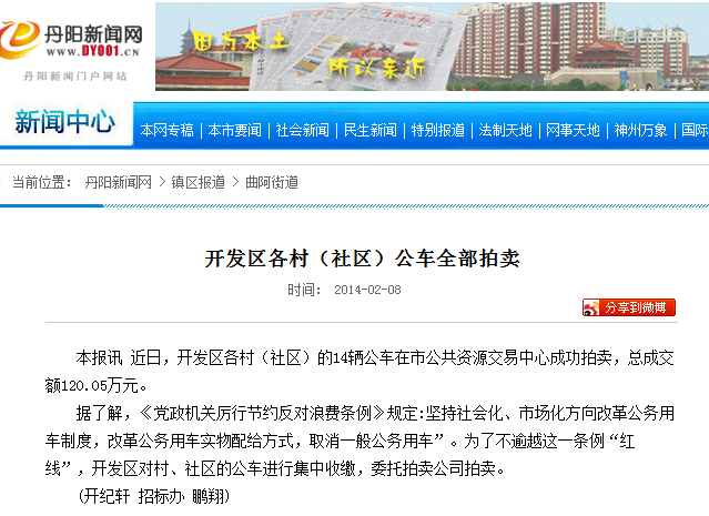 信息:开发区各村(社区)公车全部拍卖