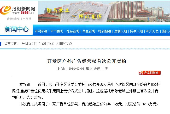 信息:开发区户外广告经营权首次公开竞拍