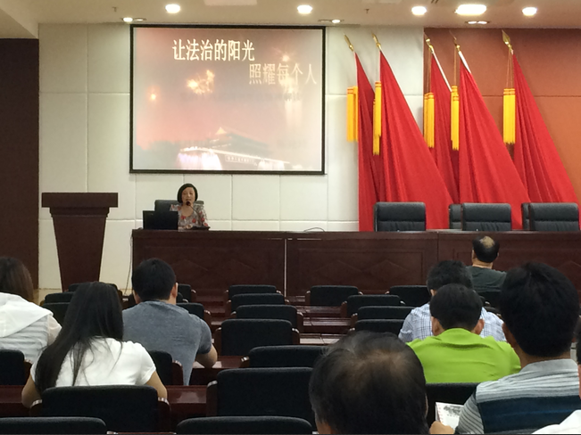 6月12日下午,丹北镇开展学习依法治国专题讲座,邀请市委党校陈建玲老师为全体机关干部做专题辅导。陈建玲老师从立法、执法、司法、守法四个方面阐述我国法治建设的进步和历程、依法治国的重大意义、紧迫性、指导思想,全面推进依法治国的总目标和原则,全面推进依法治国的六大任务及全面推进依法治国的创新方式等方面入手,结合依法治国的理论热点和法治实践经验。讲座结合各类典型案例,从十八届四中全会有关“司法公正”的要点、“法治思维和法治方式”的理念、刑事证据的证明力等方面进行详尽剖析。2个小时的讲座紧凑而生动,为丹北镇进一步强化党员干部的法治思维和法律素养,提高依法行政能力起到了积极作用。