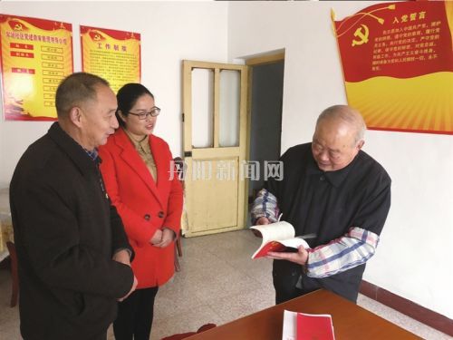 为积极响应市委号召,切实将十九大精神落实到基层,近日,开发区车站社区党委书记胡小锁及社区工作人员开展“送学上门”活动,将新党章和《十九大报告》送到了老党员李海龙家中。现场,拿到新党章和《十九大报告》的李海龙迫不及待地翻阅了起来。