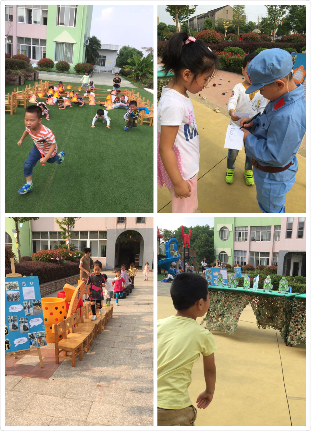 2016年是祖国妈妈的第67个生日,为了让幼儿不忘过去的艰辛,铭记先辈的付出,知道现在美好生活的来之不易,一次别具匠心的“小小红军,等你挑战”的户外挑战活动就此拉开序幕。孩子们“历经”了“家园保卫战”、“巧渡金沙江”、“飞跃卢沟桥”与“穿越火线”等重重关卡,将胜利的旗帜插满校园。在快乐的游戏中,了解了历史,收获了成功!